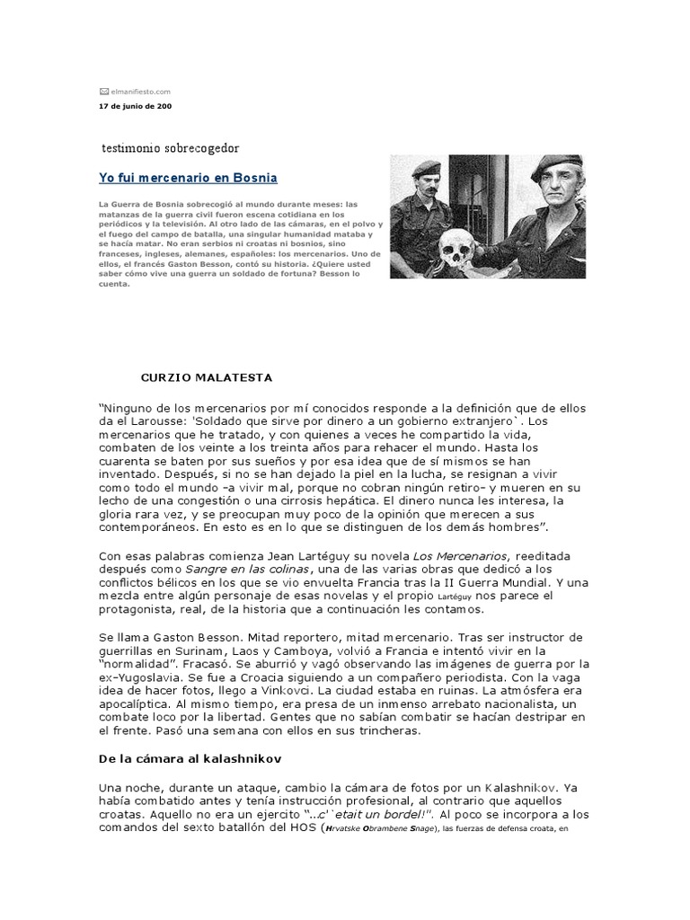 Gaston Besson, Mercenario en Bosnia | PDF | Mercenario | Croacia