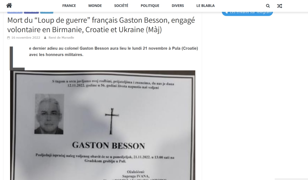 Tony on Twitter: "🇫🇷French mercenary Gaston Besson reported killed in ...