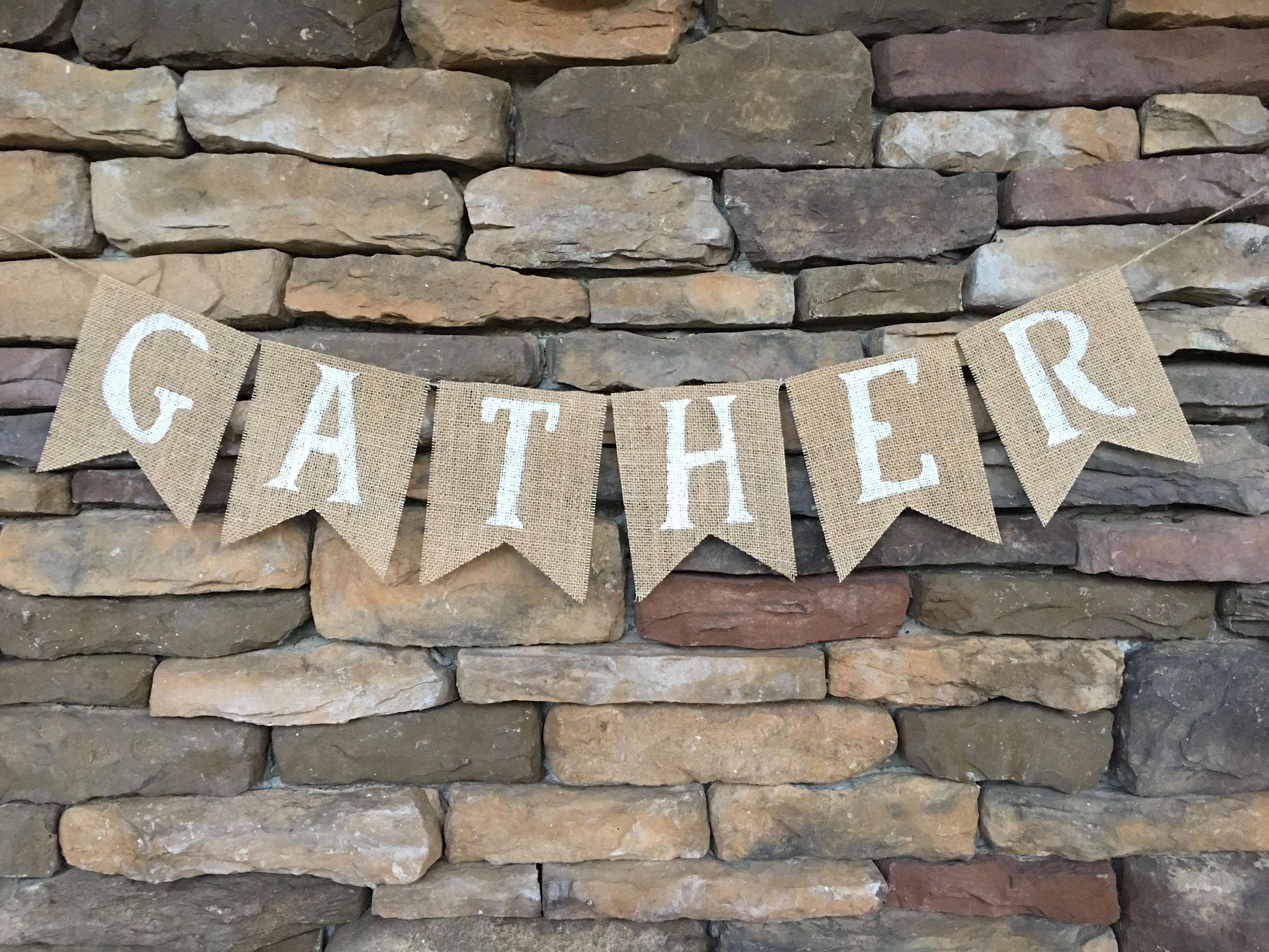 Gather Burlap Banner, Fall Banner, Thanksgiving Banner, Gather Banner ...