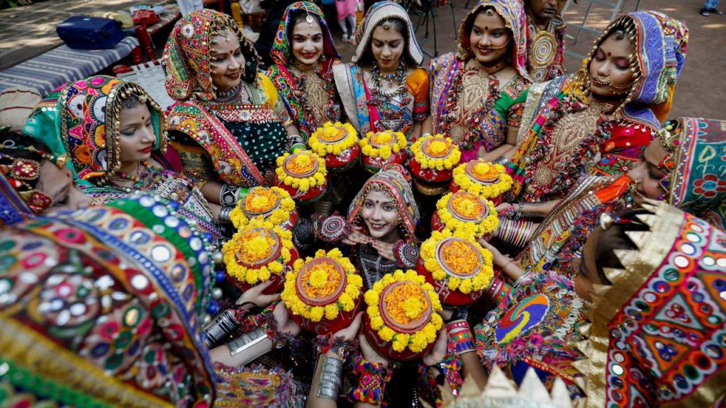 A Gujarati wedding party in Matunga, a suburb of Mumbai, India, spills ...