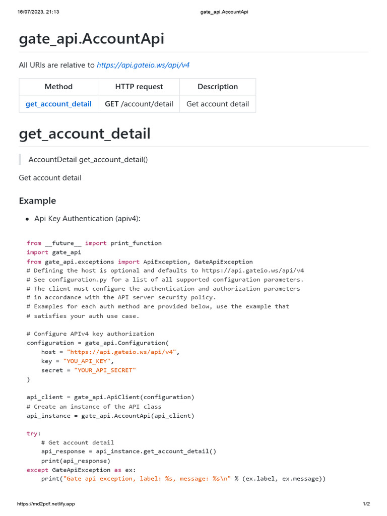 Gate.io API: Get Account Detail Guide | PDF
