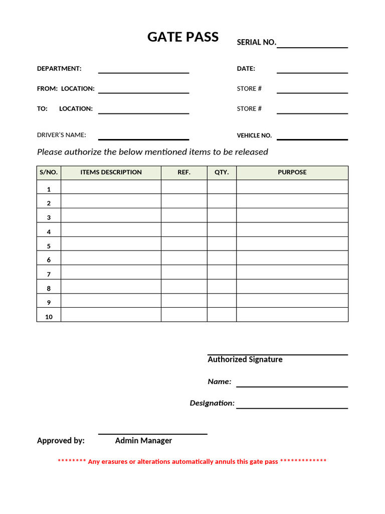 Gate Pass Format For Companies in MS Word | PDF | Finance & Money ...