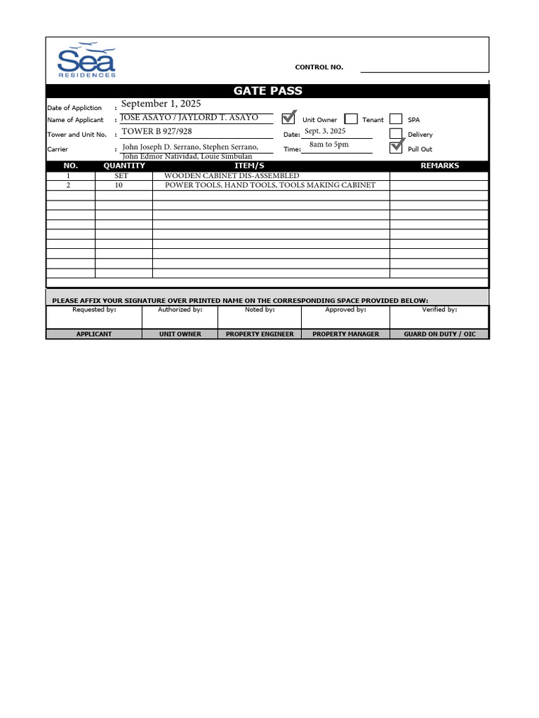 Standardized Gate Pass Form for Property Move-Ins and Move-Outs | PDF