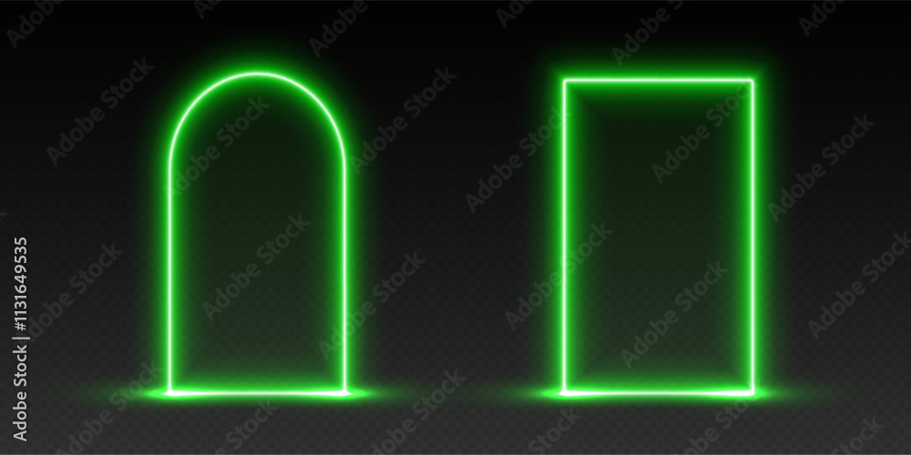 Neon door and arch, green glowing portal, futuristic gate, magic LED ...