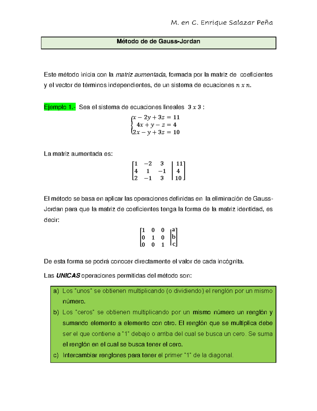 Resolución de sistemas de ecuaciones con el método de Gauss-Jordan en ...