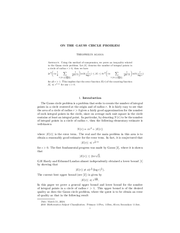 (PDF) ON THE GAUSS CIRCLE PROBLEM