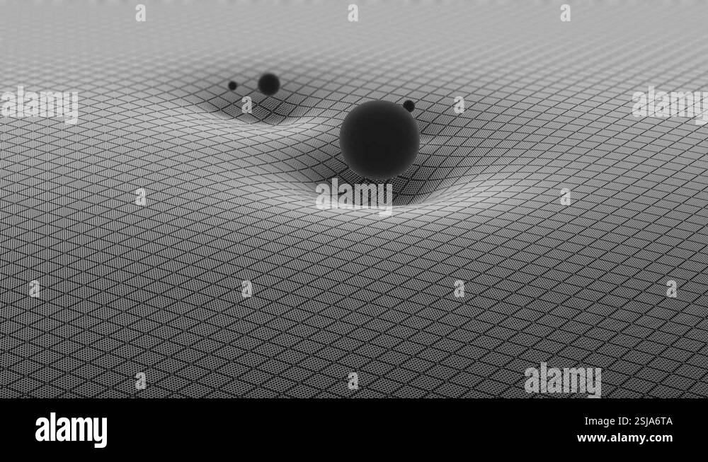 Gravity example - objects bend the spacetime grid and move around Stock ...