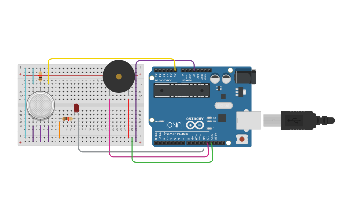 Gas Sensor with Arduino in Tinkercad | Gas Detecting Alarm system using ...