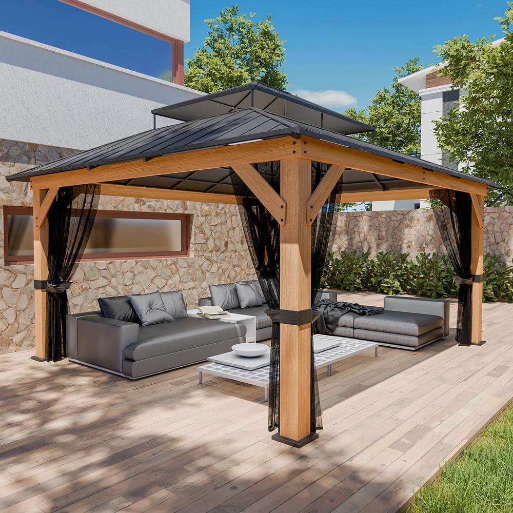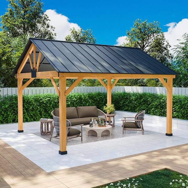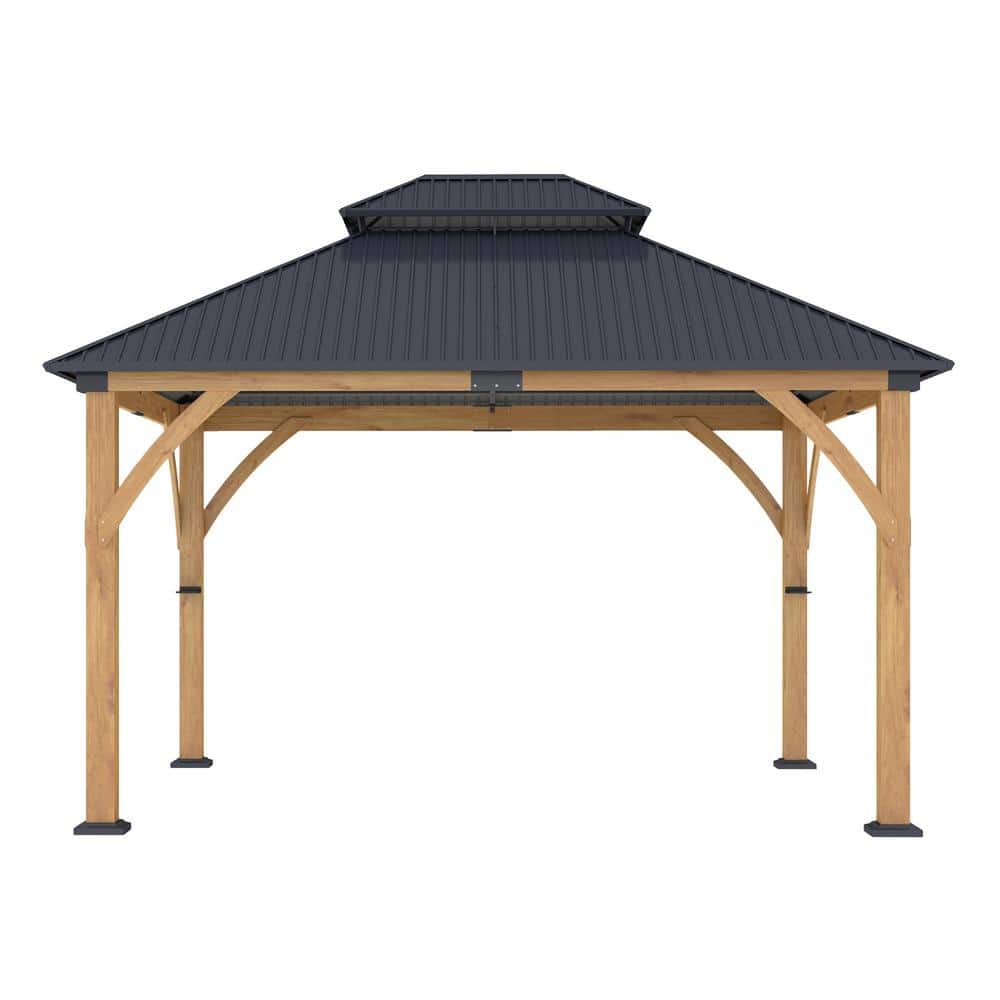 Sunjoy 12 ft. x 16 ft. Outdoor Patio Steel Hardtop Gazebo, Cedar Framed ...