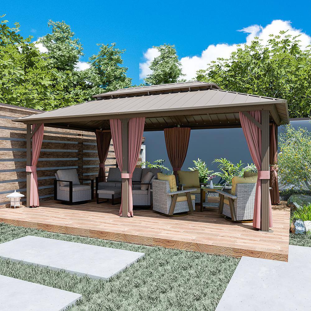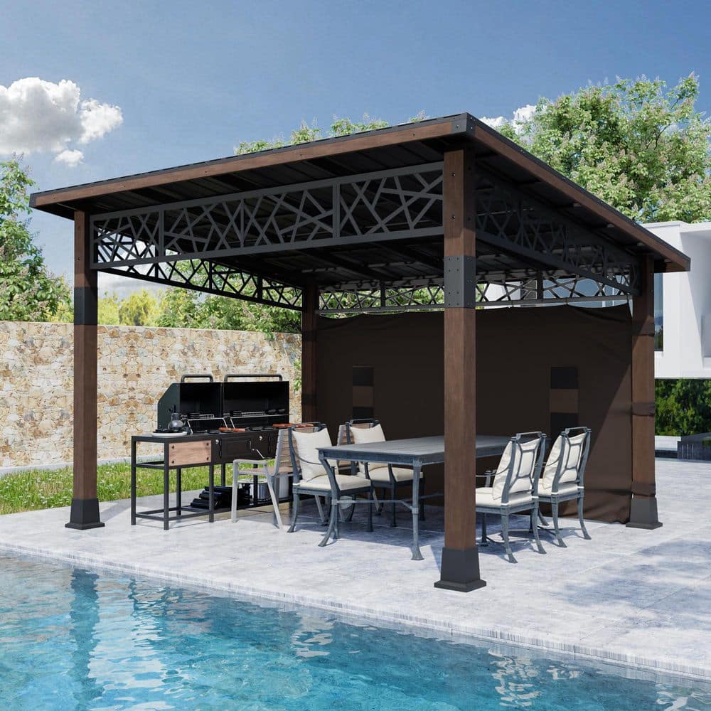 INMITOM 15 ft. x 13 ft. Wood Grain Aluminum Gazebo with Steel Roof ...