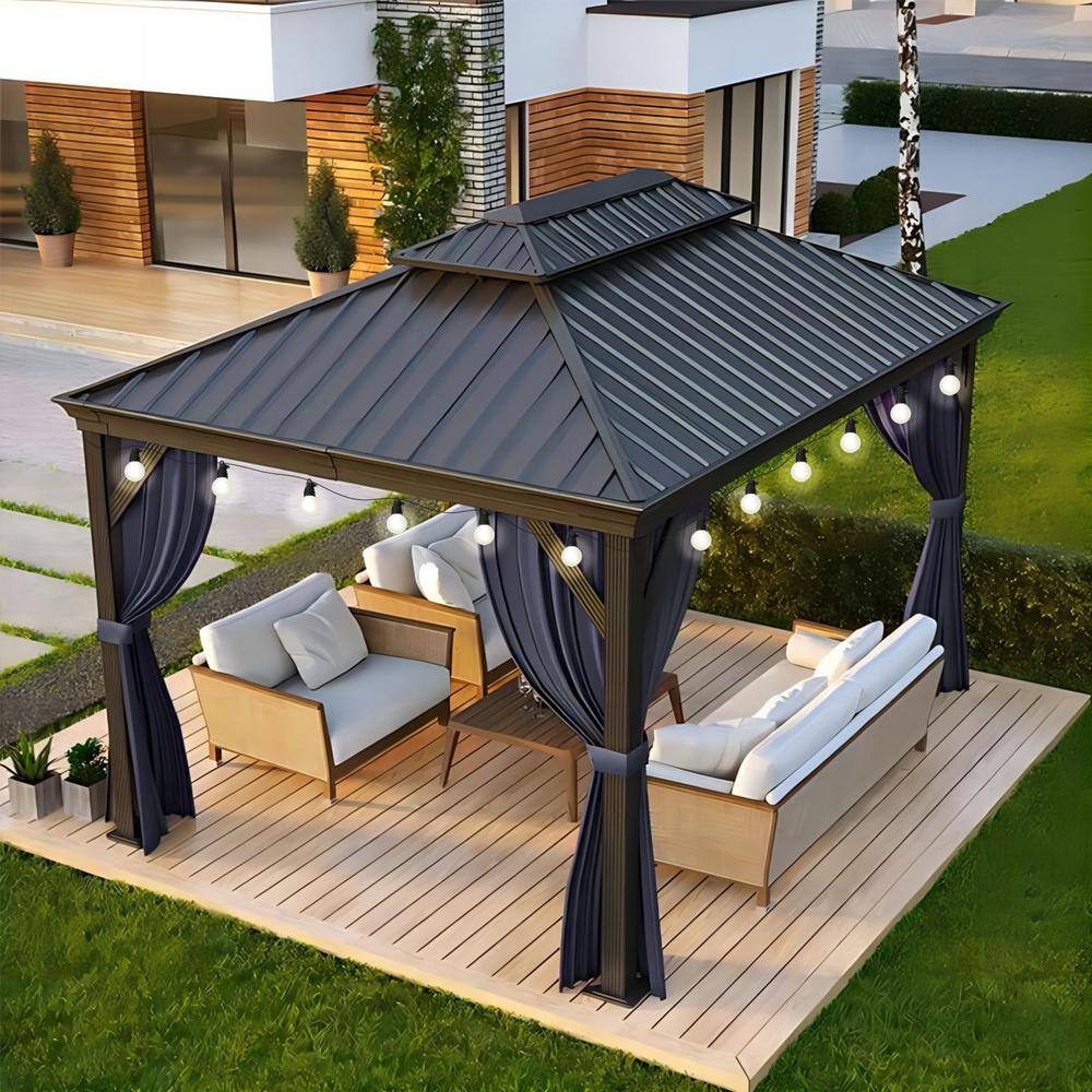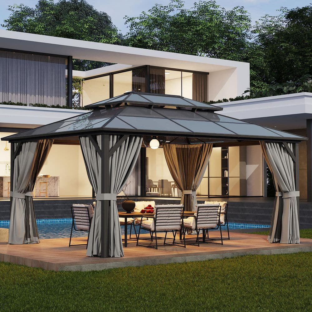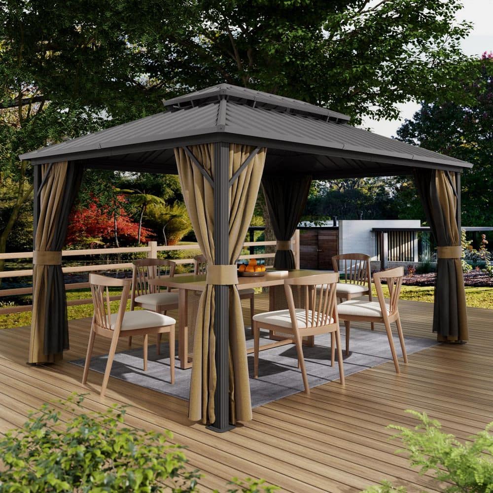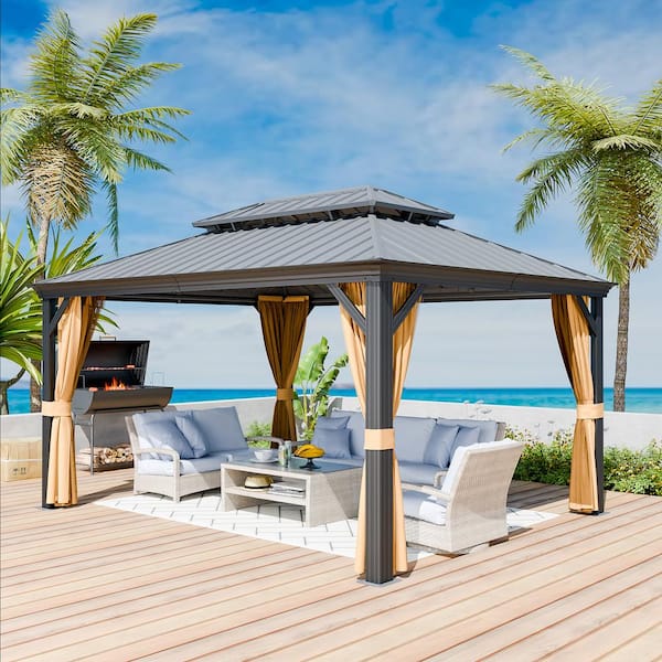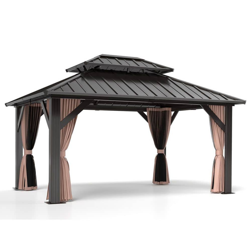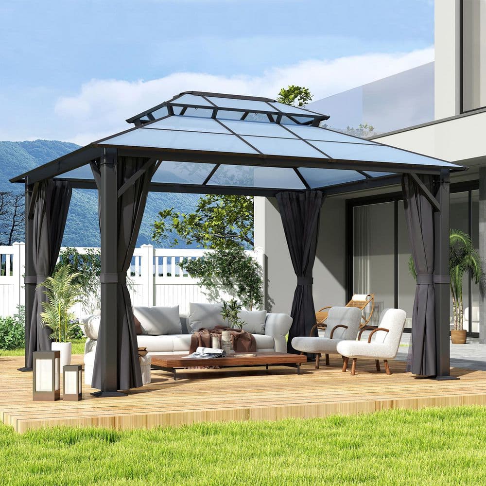 Sizzim 12 ft. W x 10 ft. D Black Aluminum Double Roof Hardtop Gazebo ...