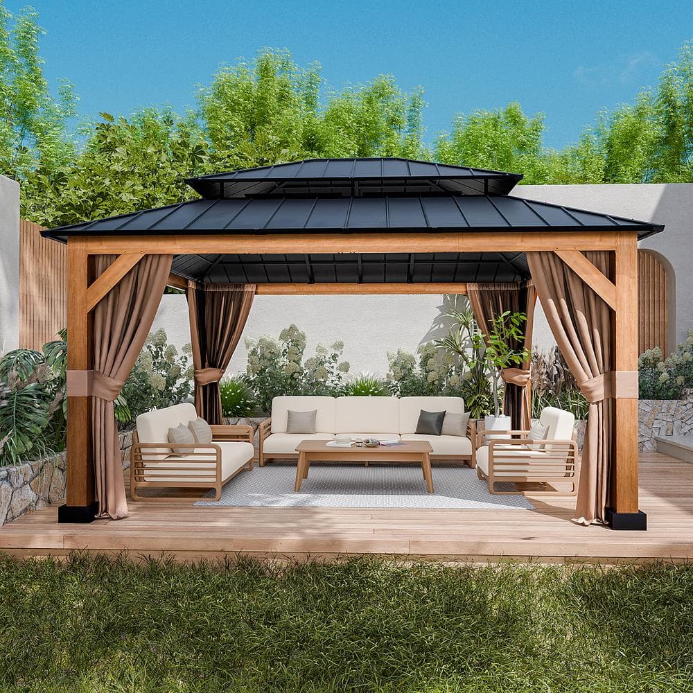 COVERONICS 11 ft. x 13 ft. Outdoor Patio Wood Frame Gazebo, Double ...