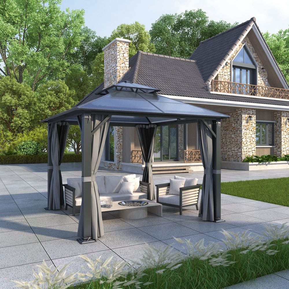 INMITOM 10 ft. x 10 ft. Aluminum Hardtop Gazebo with Double Galvanized ...