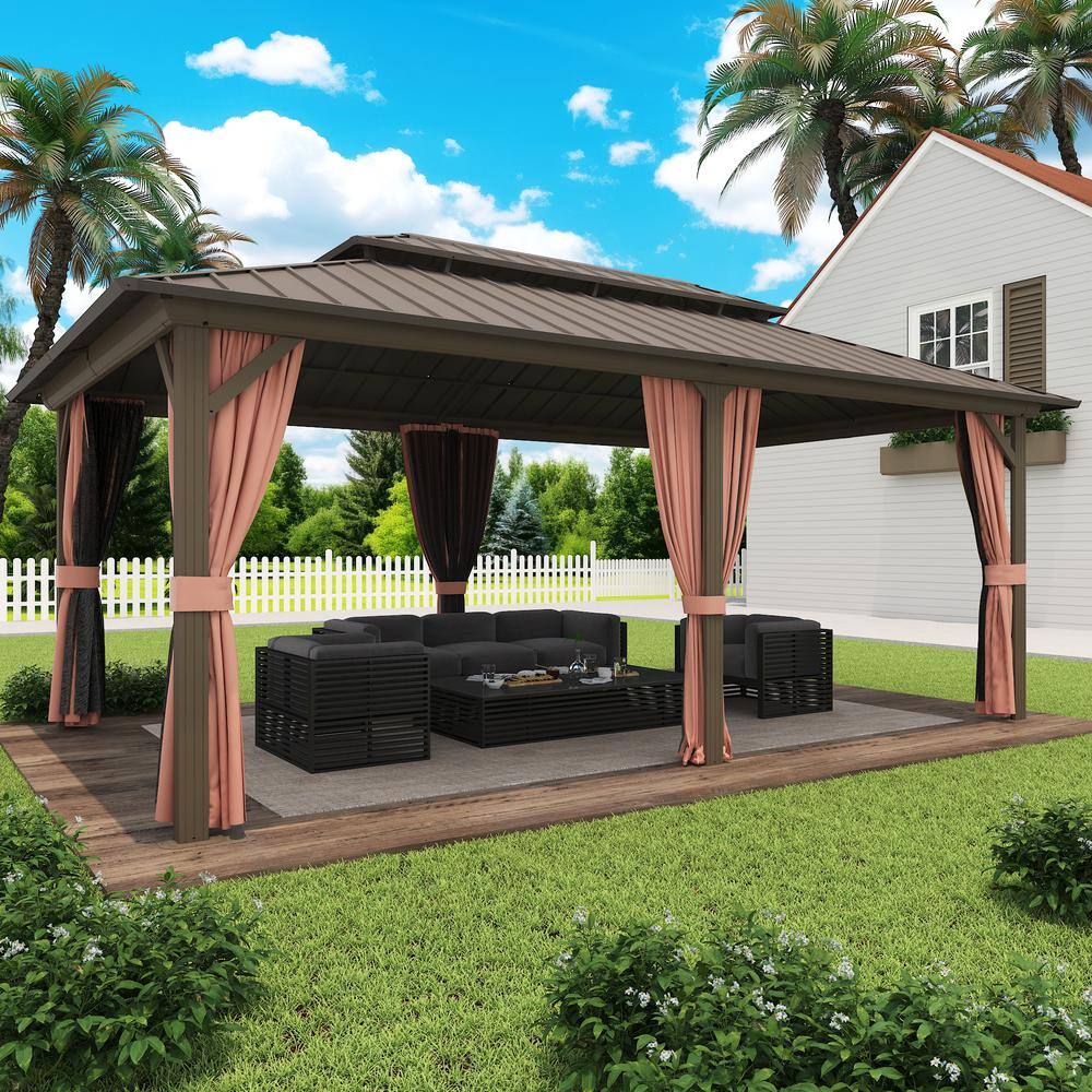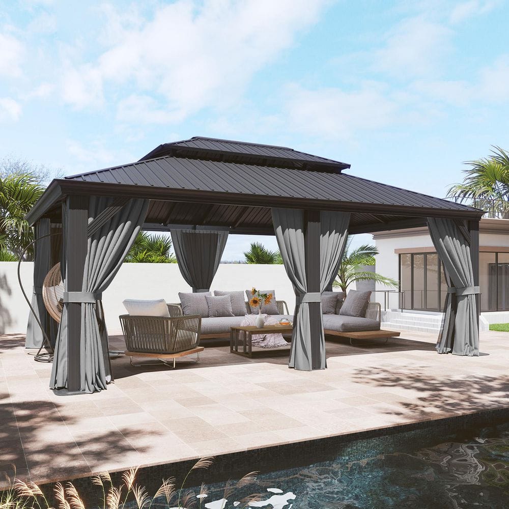 VEIKOUS 16 ft. W x 12 ft. D Hardtop Gazebo Aluminum Double Roof Metal ...