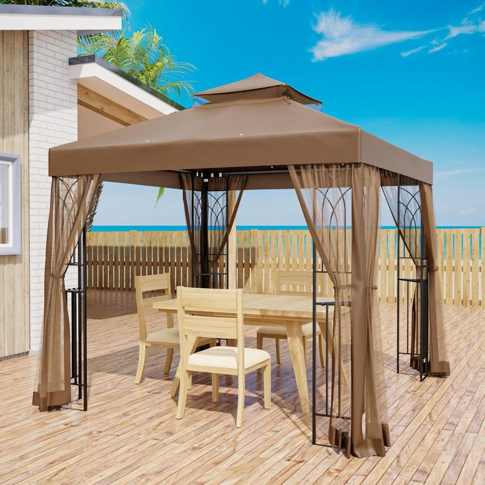 Sizzim 8 ft. x 8 ft. Brown Outdoor Gazebo, Polycarbonate Double Roof ...