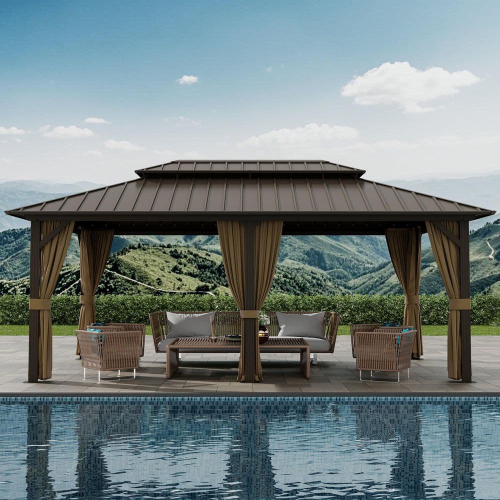 Sizzim 20 ft. x 14 ft. Outdoor Double Roof Hardtop Gazebo with Gutters ...