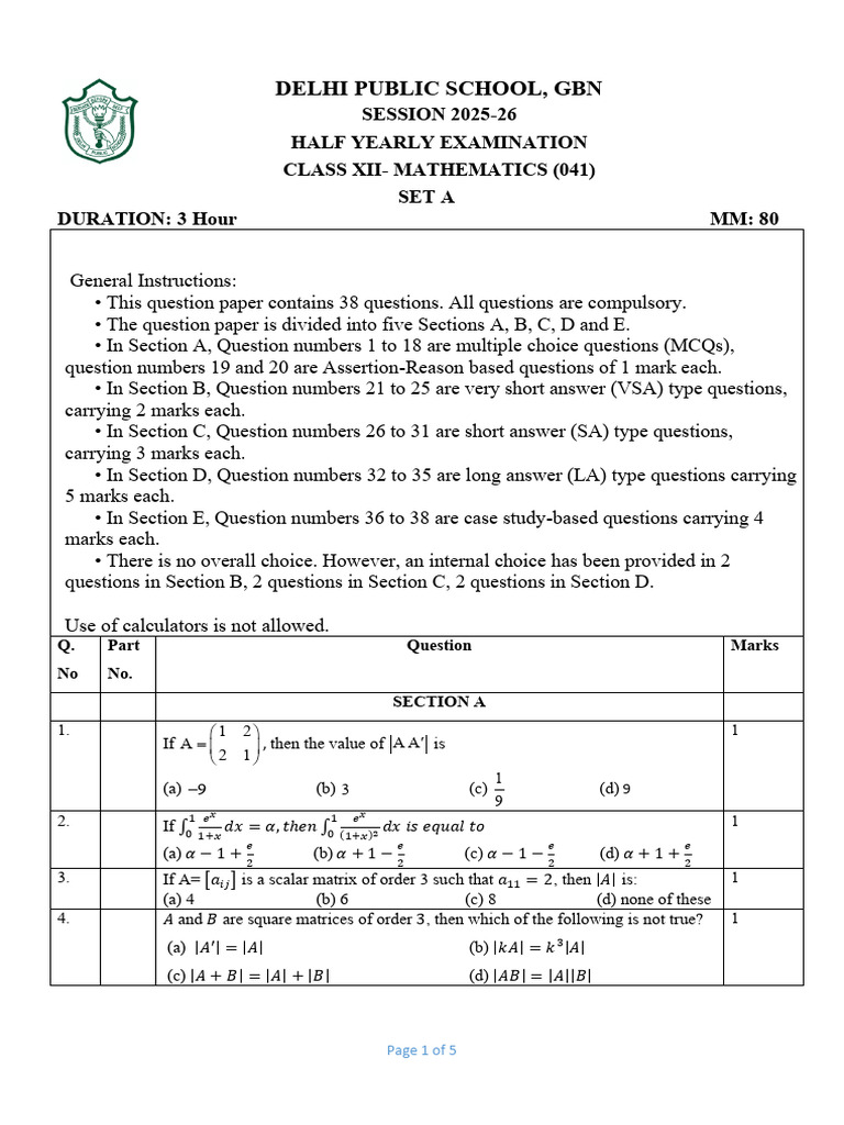 Class Xii Mathematics Mid Term 2024-25 (DPS, GBN) | PDF | Matrix ...