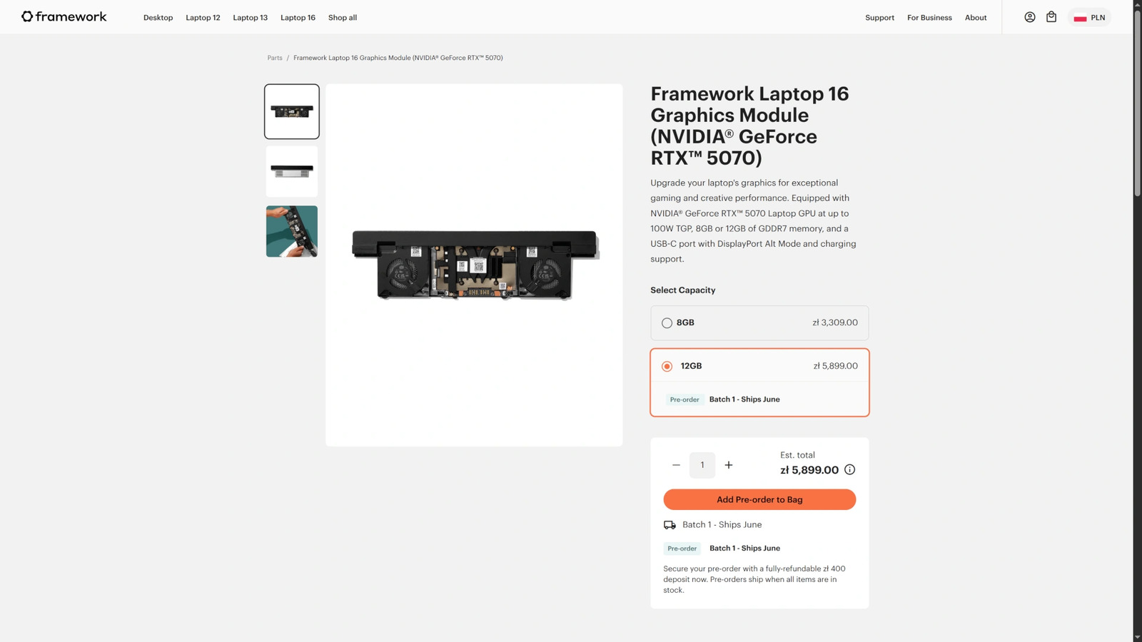 Framework otworzył przedsprzedaż modułów NVIDIA GeForce RTX 5070 12 GB ...