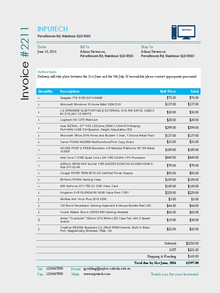 Computer Invoice | PDF | Computer Hardware | Office Equipment