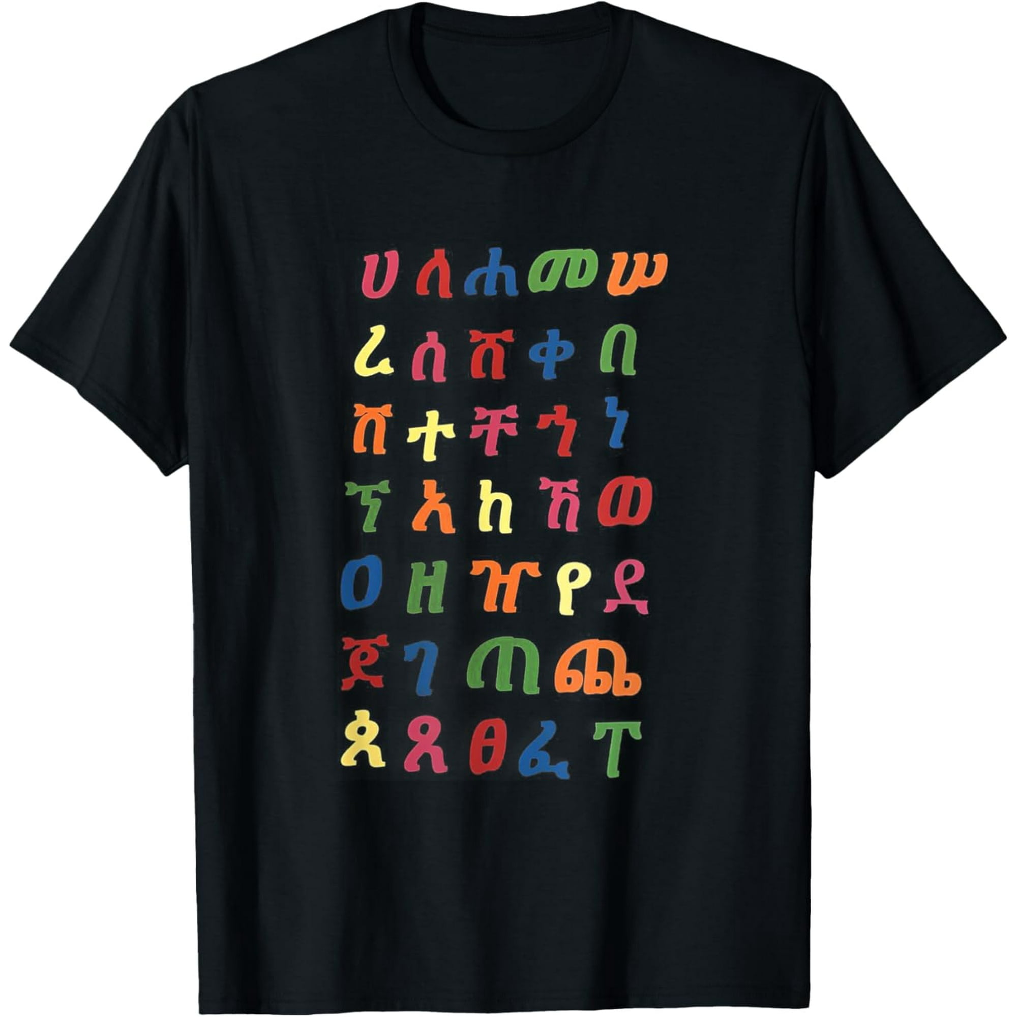 Colorful Ge'ez Script Alphabet Graphic for Unisex Cultural Short Sleeve ...