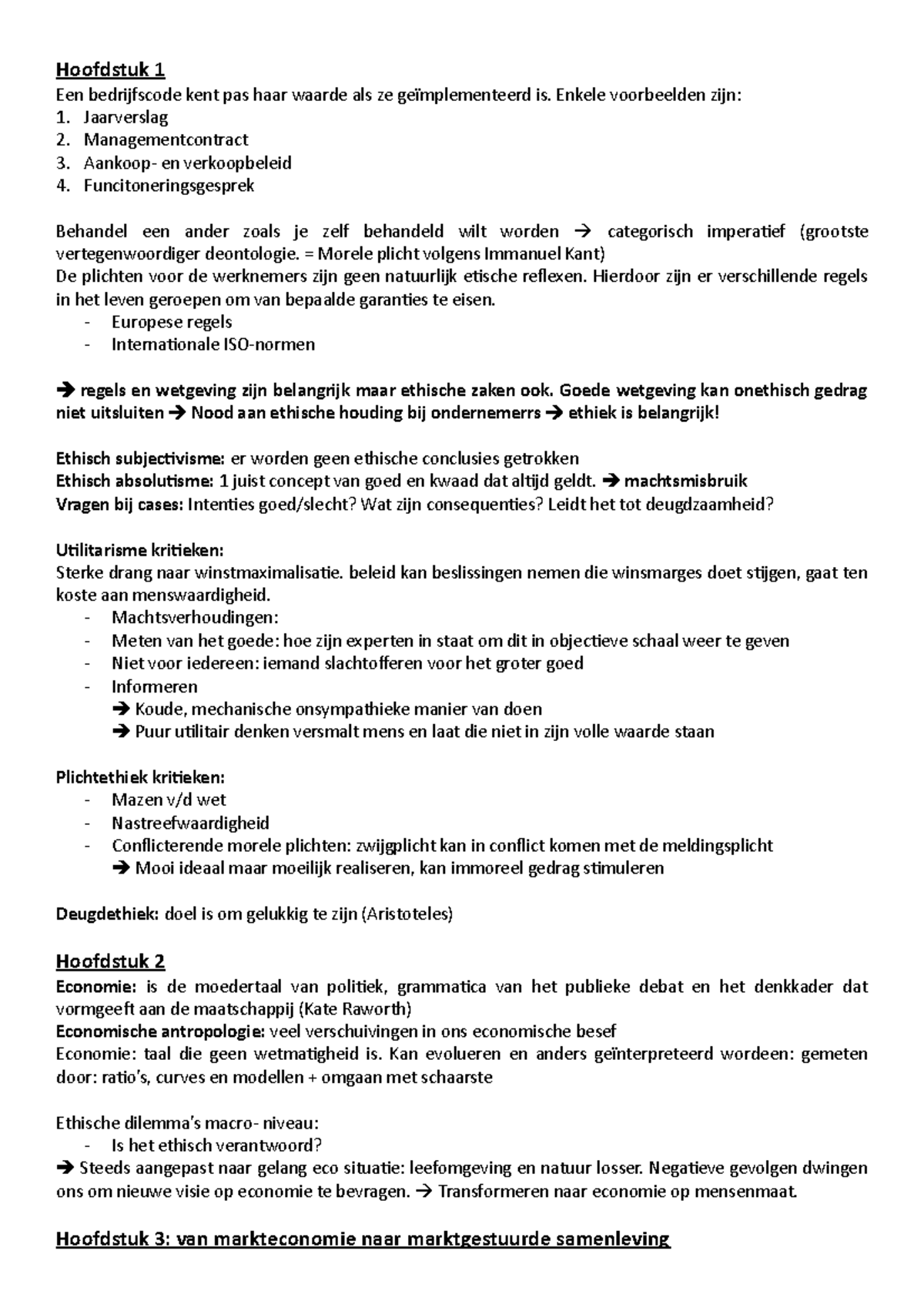 RZL Cursus Samenvatting - Hoofdstuk 1 Een bedrijfscode kent pas haar ...