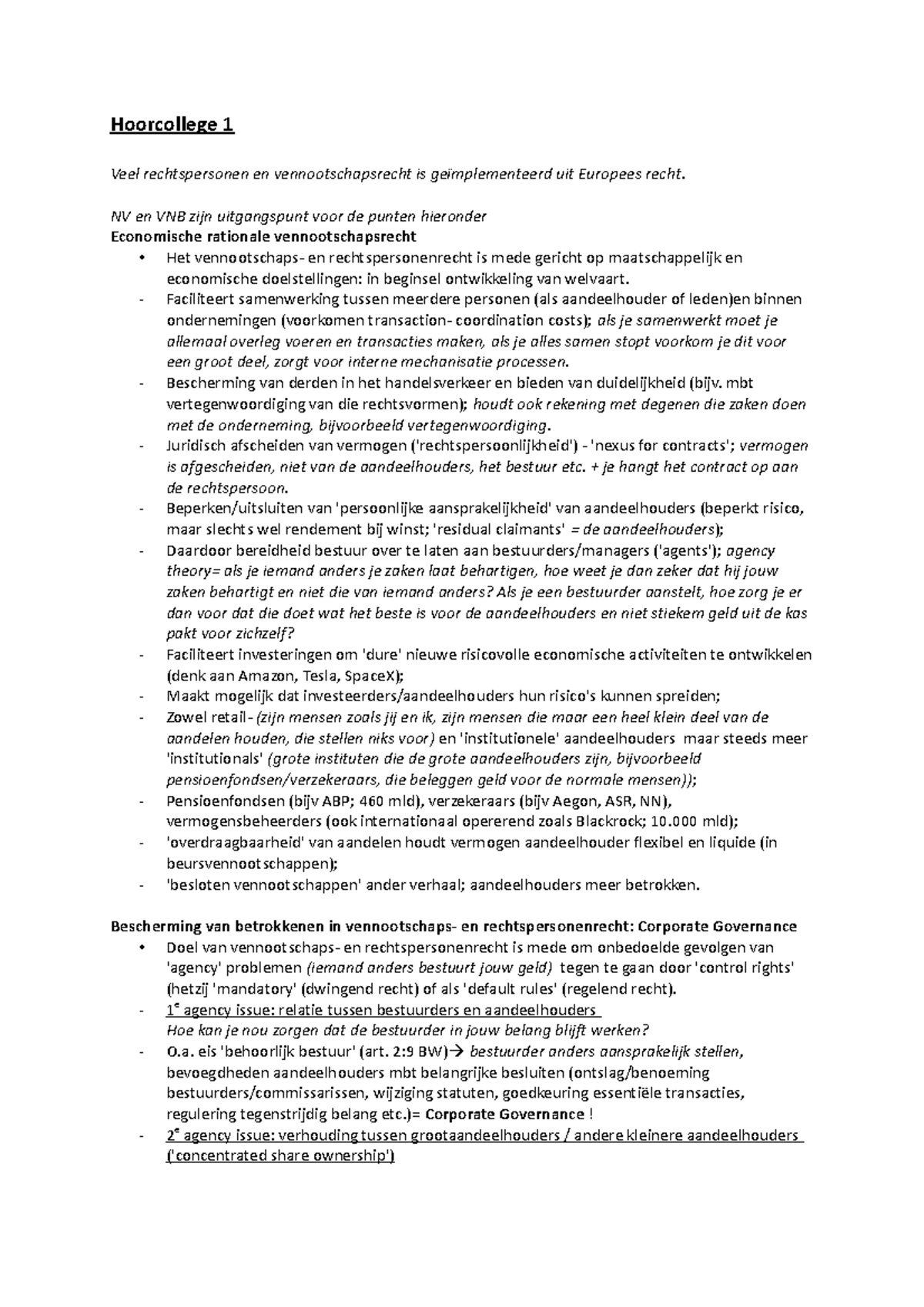 Hoorcollege 1-3 - Hoorcollege 1 Veel rechtspersonen en ...