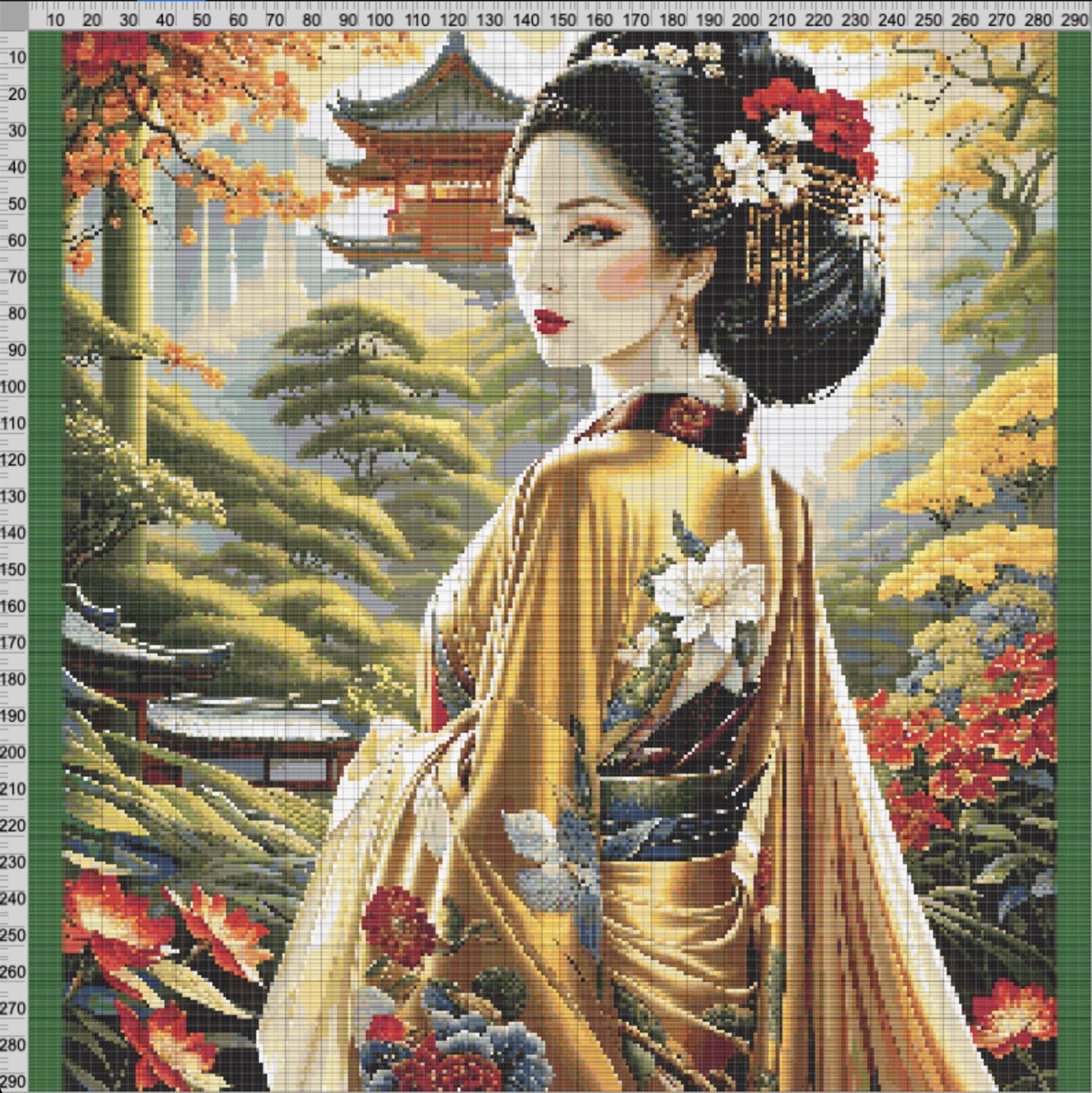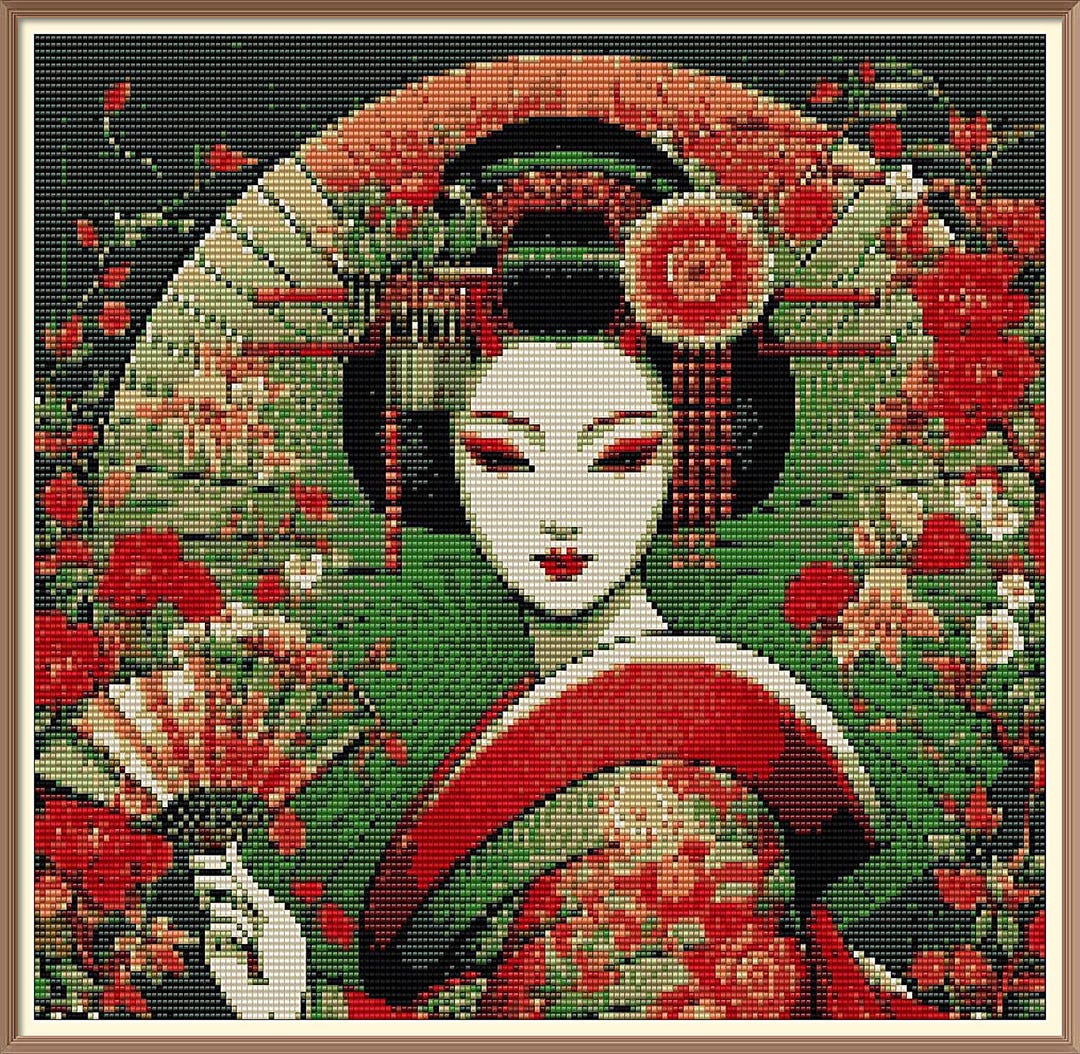 Japanese Geisha Cross Stitch Pattern Colorful Art DIY X-stitch - Etsy