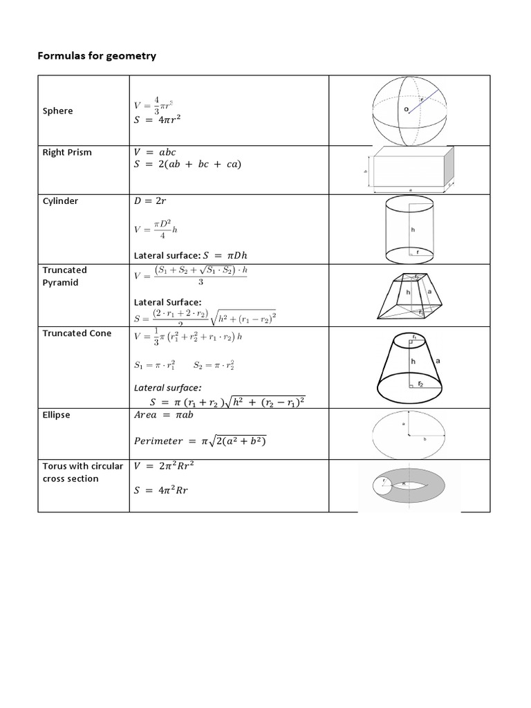 Geometry Formulas Sheet | Geometry formulas, Geometric formulas, Math ...