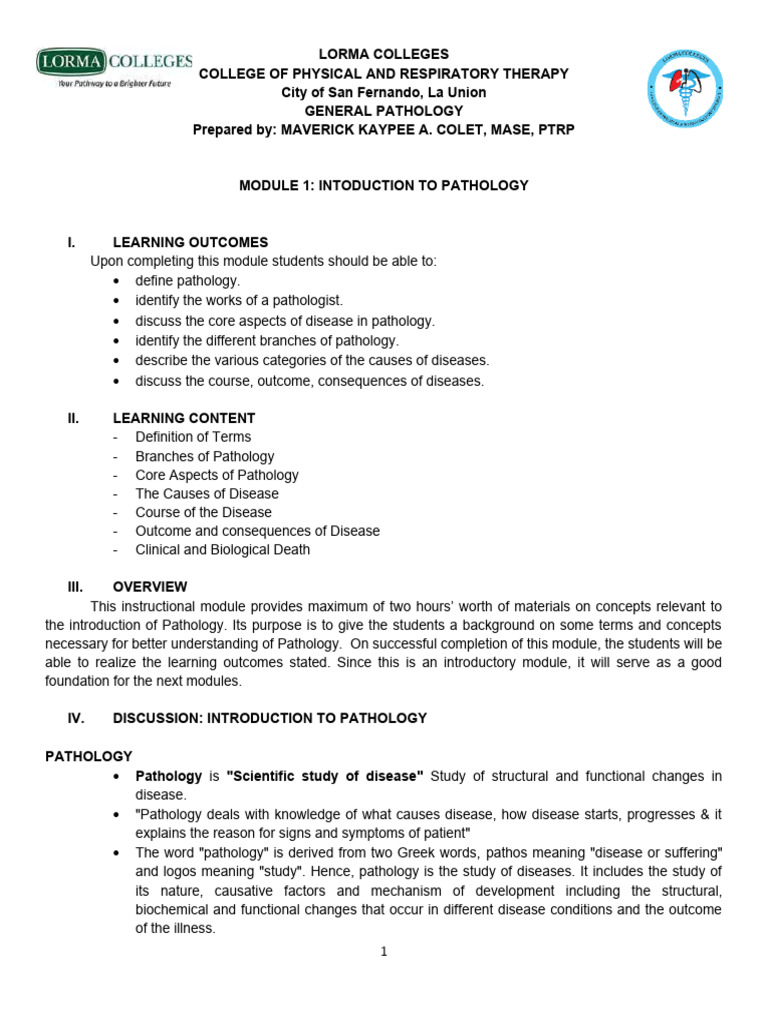 GenPath Mod1 Intro To Pathology | PDF | Pathology | Cytopathology