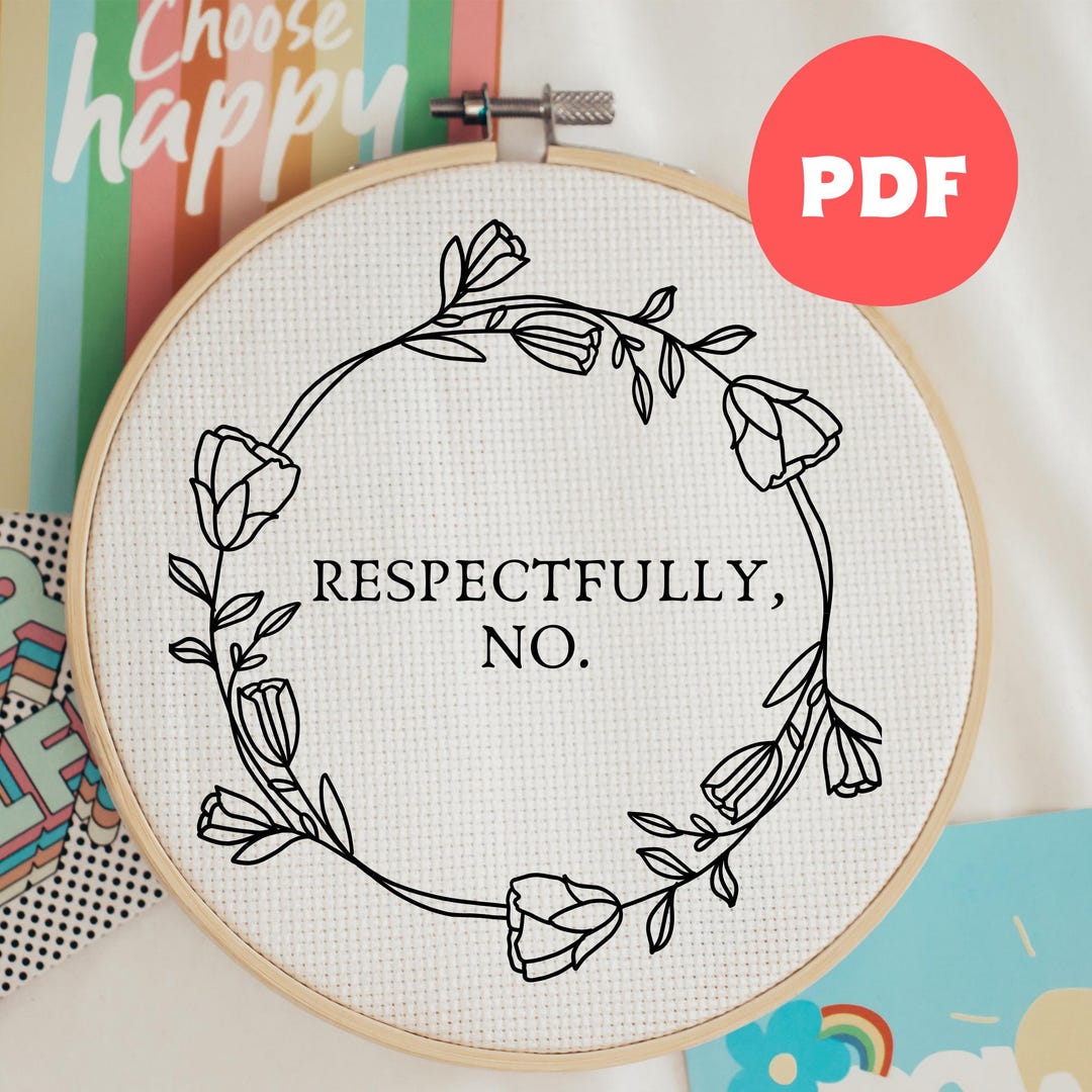 PDF Stickdatei, Respektvoll Nein, Handstickerei, moderne Stickerei ...