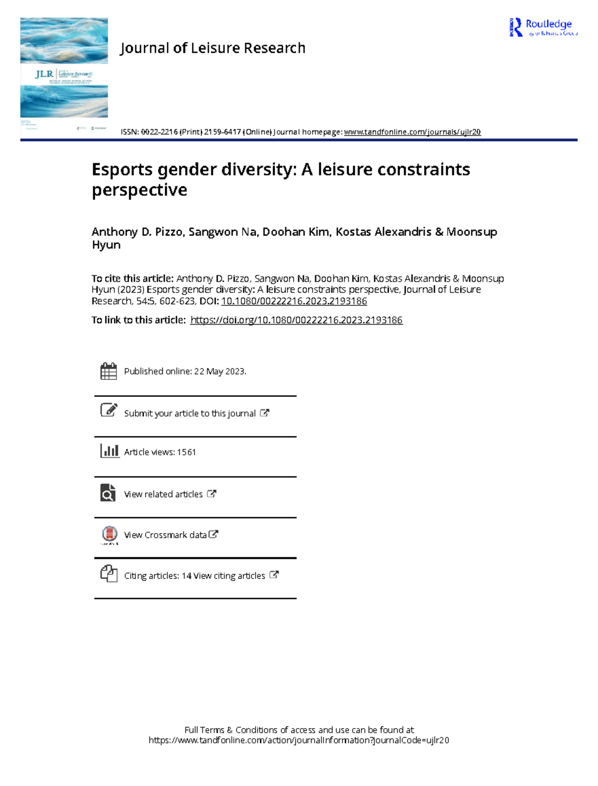 Esports Gender Diversity: A Leisure Constraints Analysis (JLR 54:5 ...