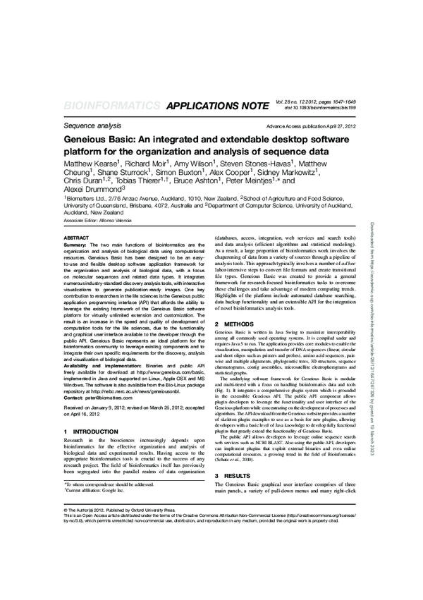 (PDF) Geneious Basic: An Integrated and Extendable Desktop Software ...