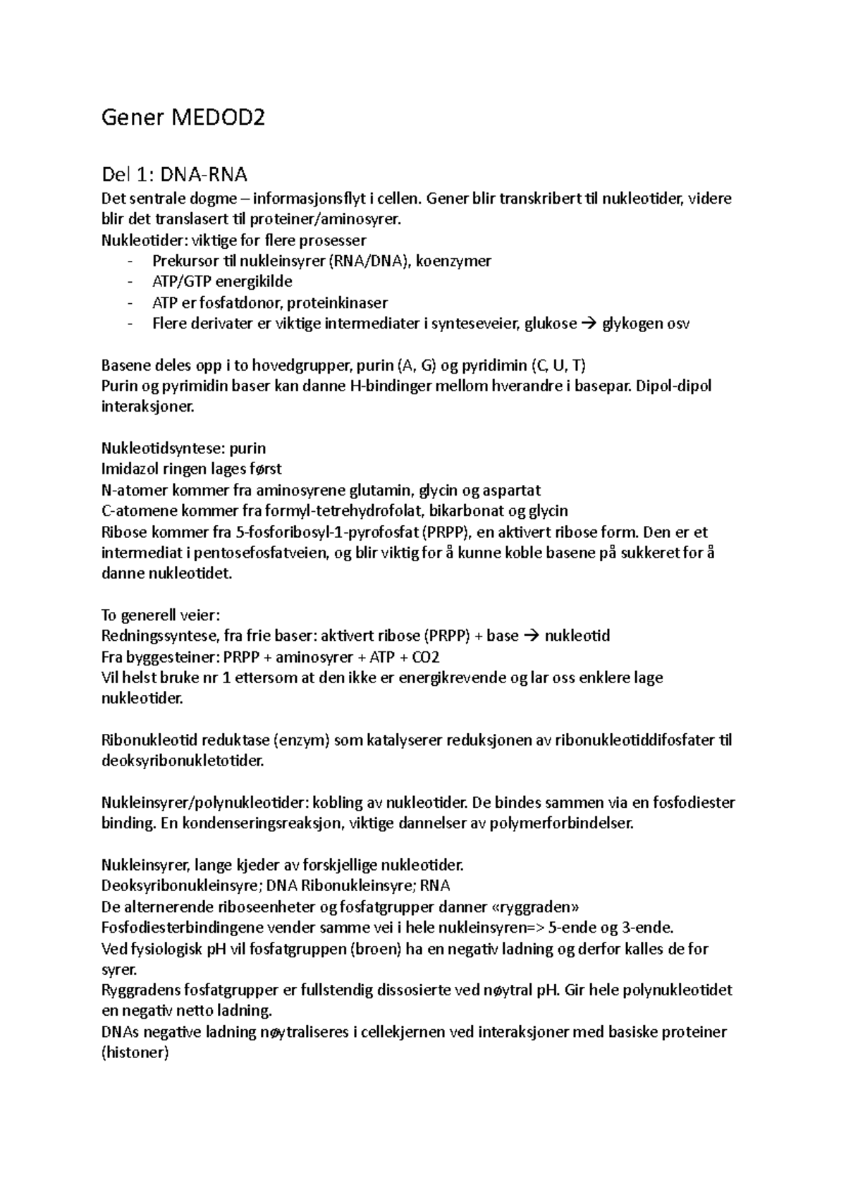Gener MEDOD 2 - Gener MEDOD Del 1: DNA-RNA Det sentrale dogme ...