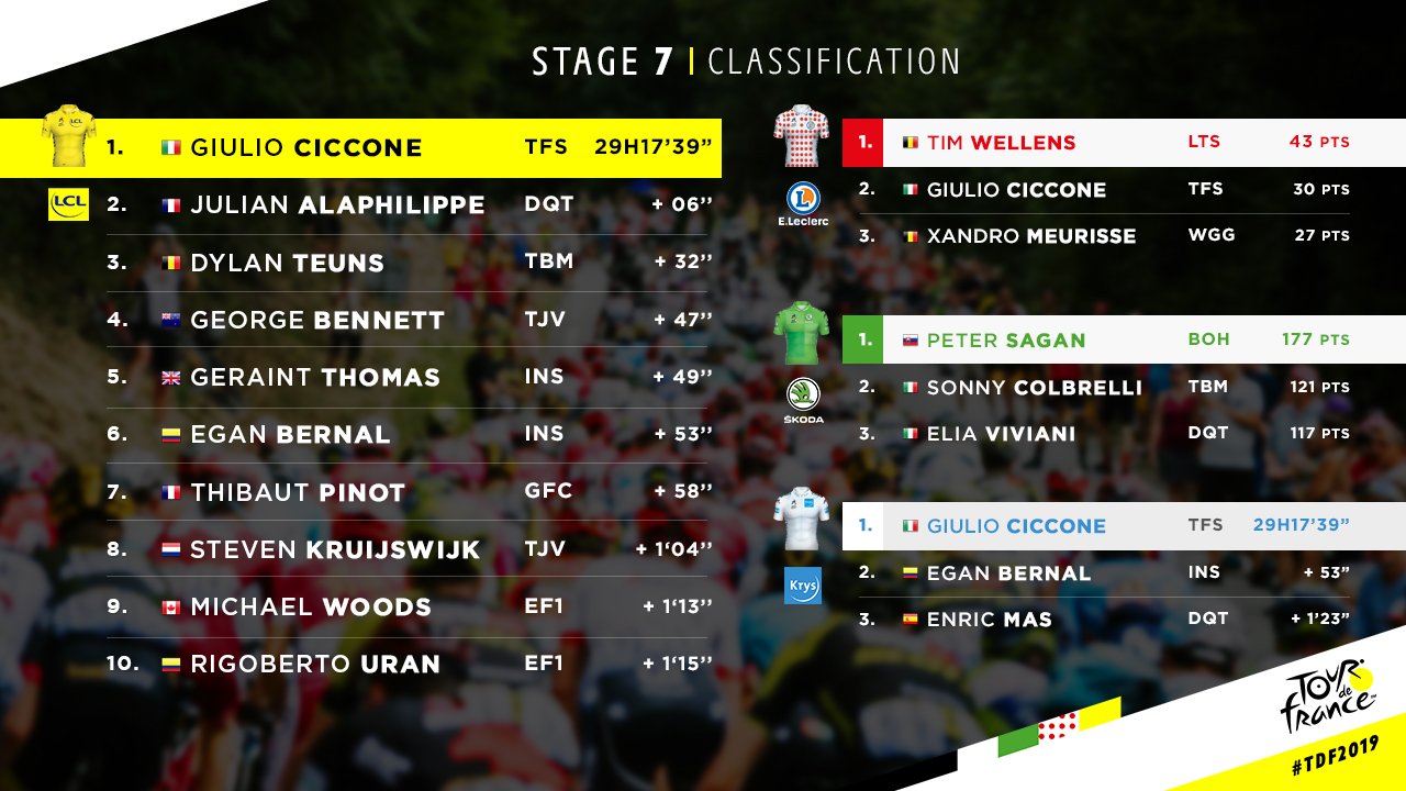 Tour de France™ on Twitter: "Classification after stage 7 Classement ...