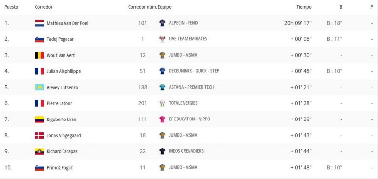 le top 10 du classement général après la 9ème étape - the top 10 in the ...