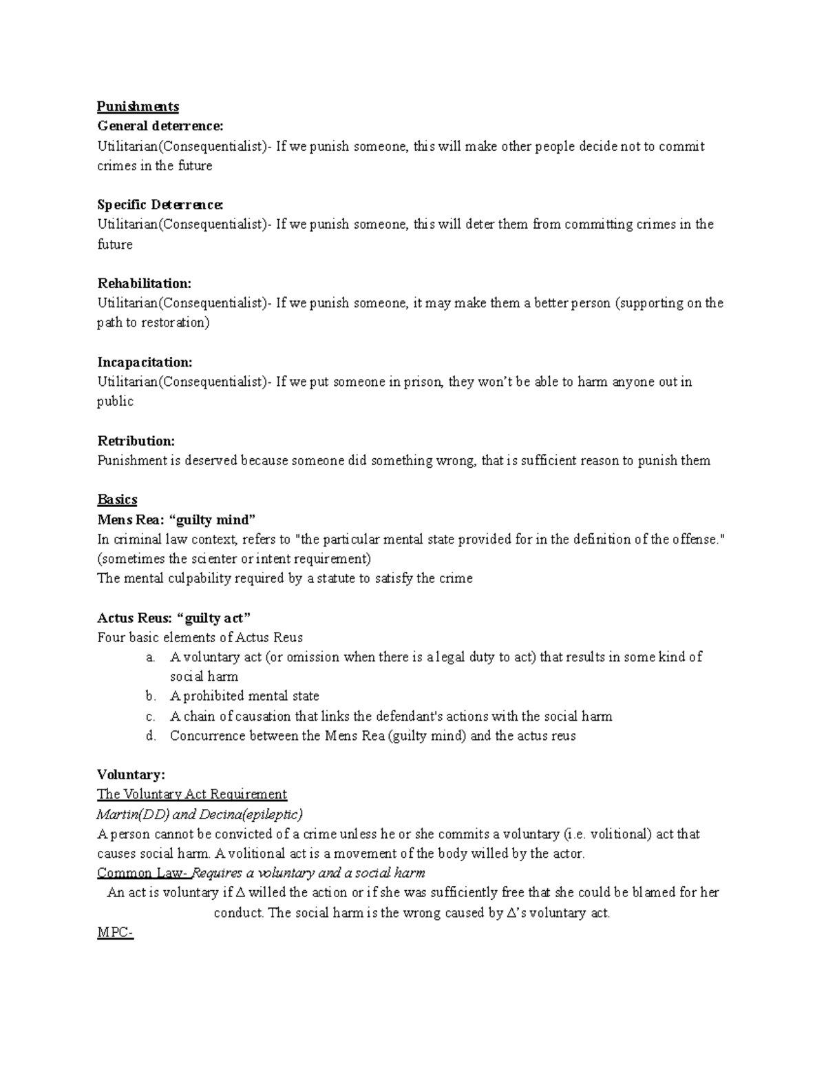 Crim Law outline for entire class - beginning to end - Punishments ...
