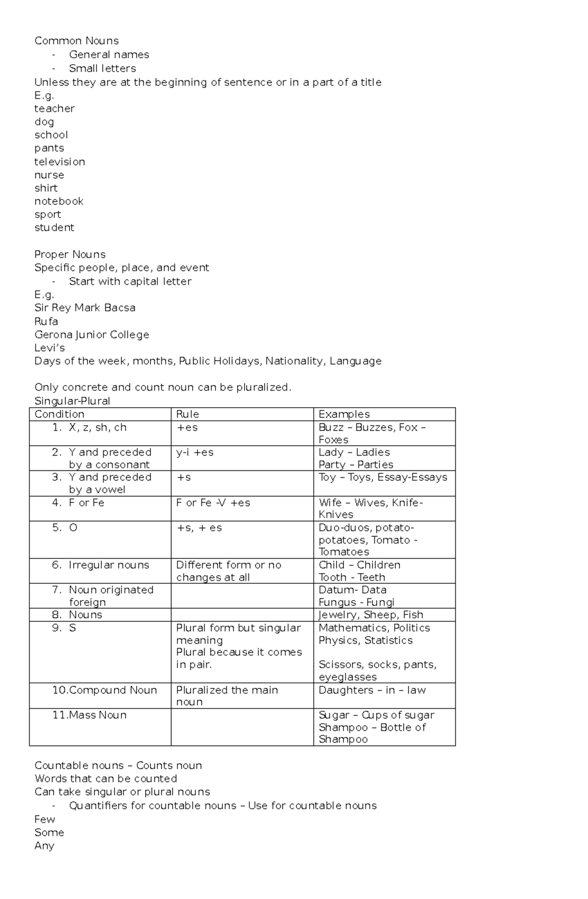 Grammar - Common Nouns - General names - Small letters Unless they are ...