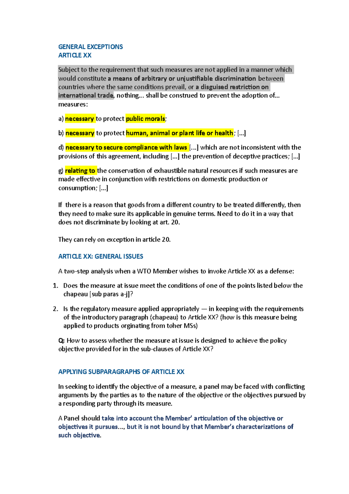 ITL general exception under XX - GENERAL EXCEPTIONS ARTICLE XX Subject ...