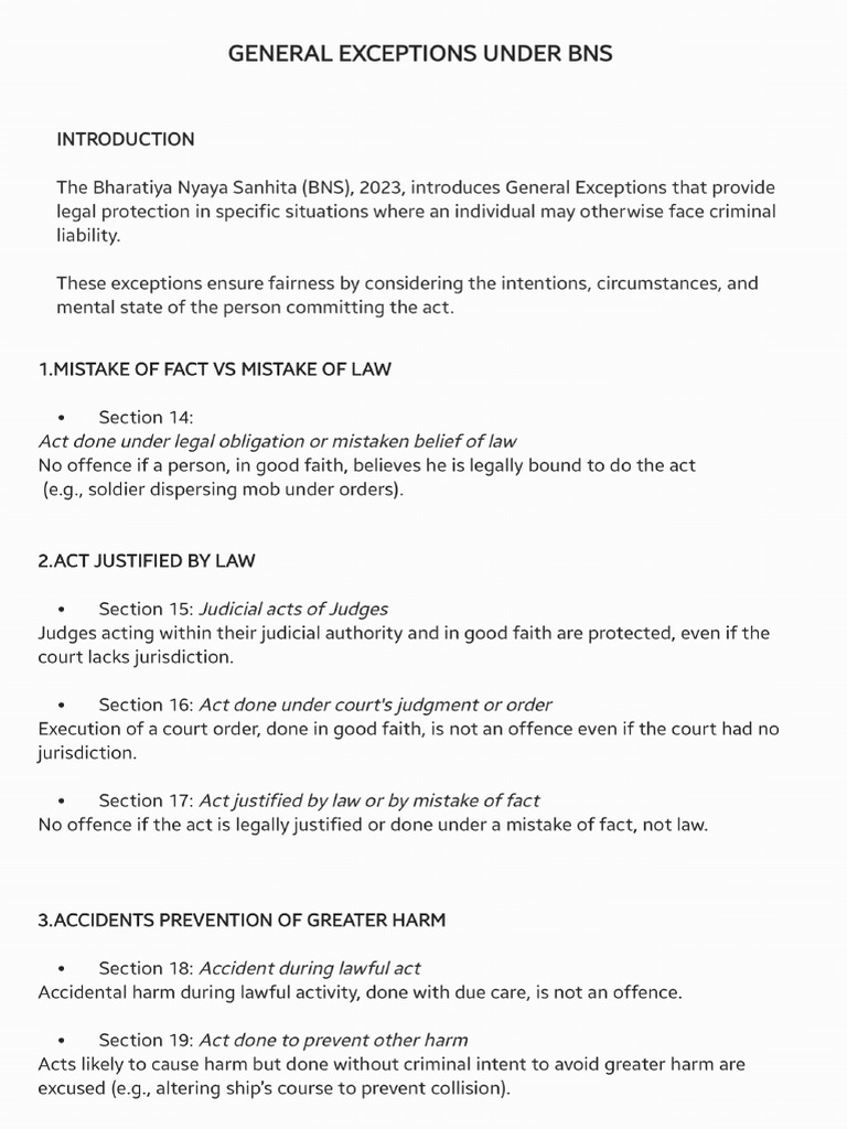 Types of General Exceptions BNS 2023 #BNS2023 #BharatiyaNyayaSanhita # ...