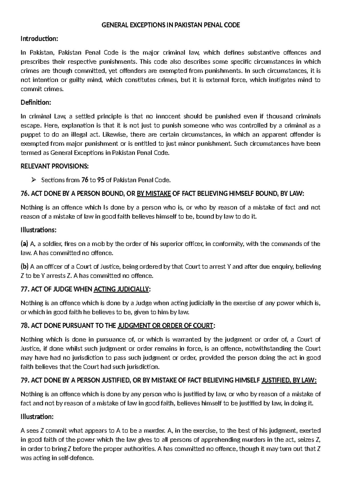 General Exceptions IN Pakistan Penal CODE - GENERAL EXCEPTIONS IN ...
