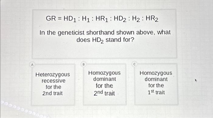 Solved A GR = HD₁: H₁ HR₁ HD2 H₂: HR2 In the geneticist | Chegg.com