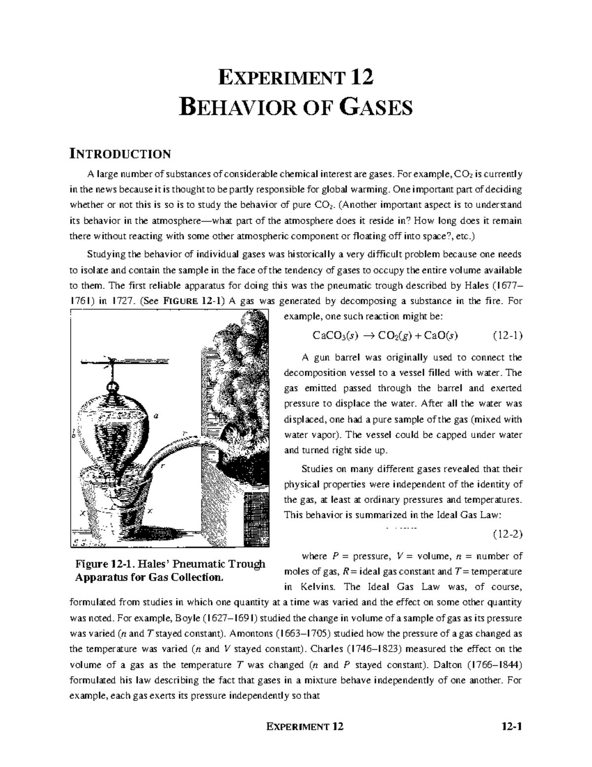 Uof C GL12 Lab - Experiment 12: Behavior of Gases Analysis - Studocu