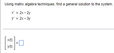 Solved Use the matrix methods to find the general solution | Chegg.com