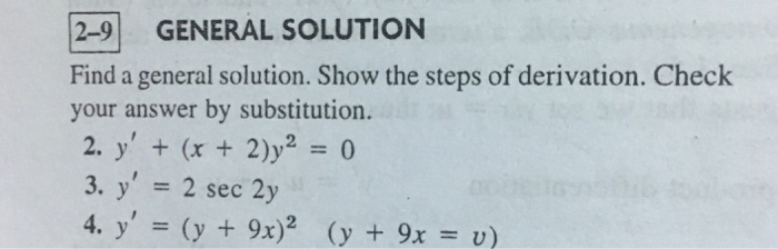 Solved 2-9 GENERAL SOLUTION Find a general solution. Show | Chegg.com
