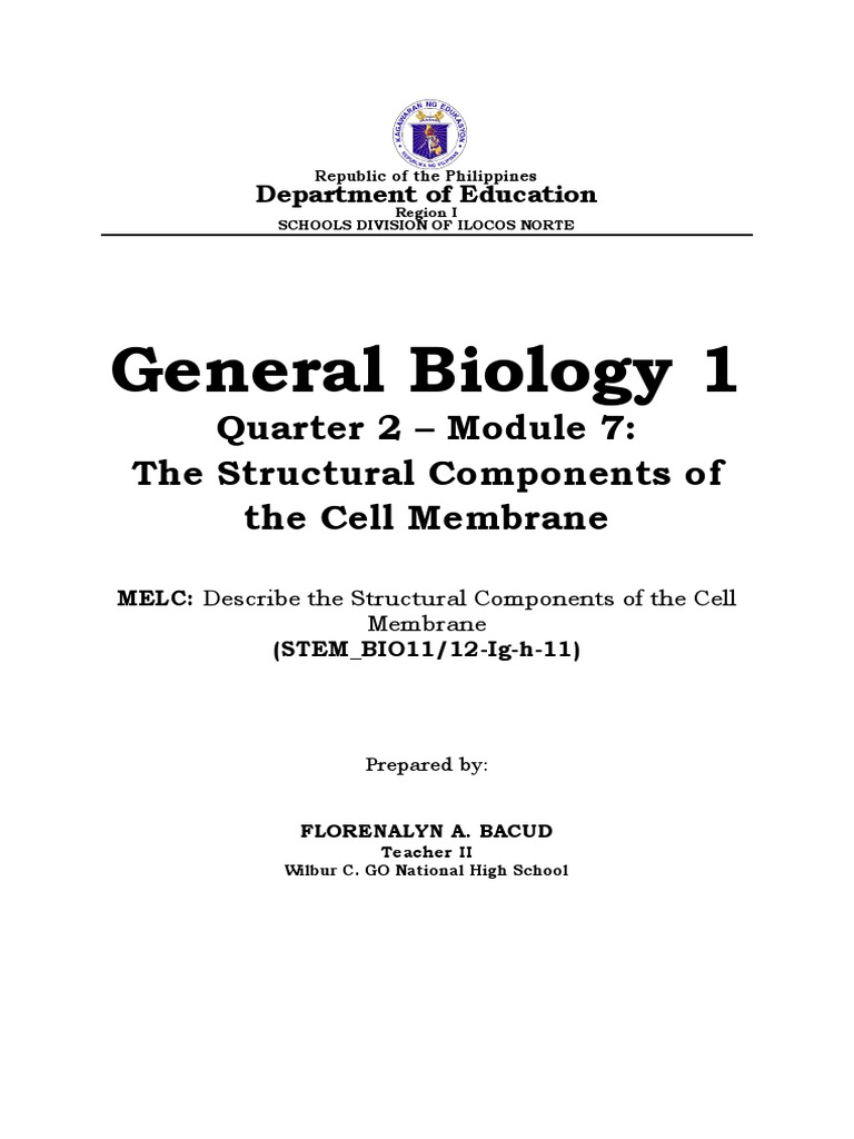 General Biology 1: Quarter 2 - Module 7: The Structural Components of ...