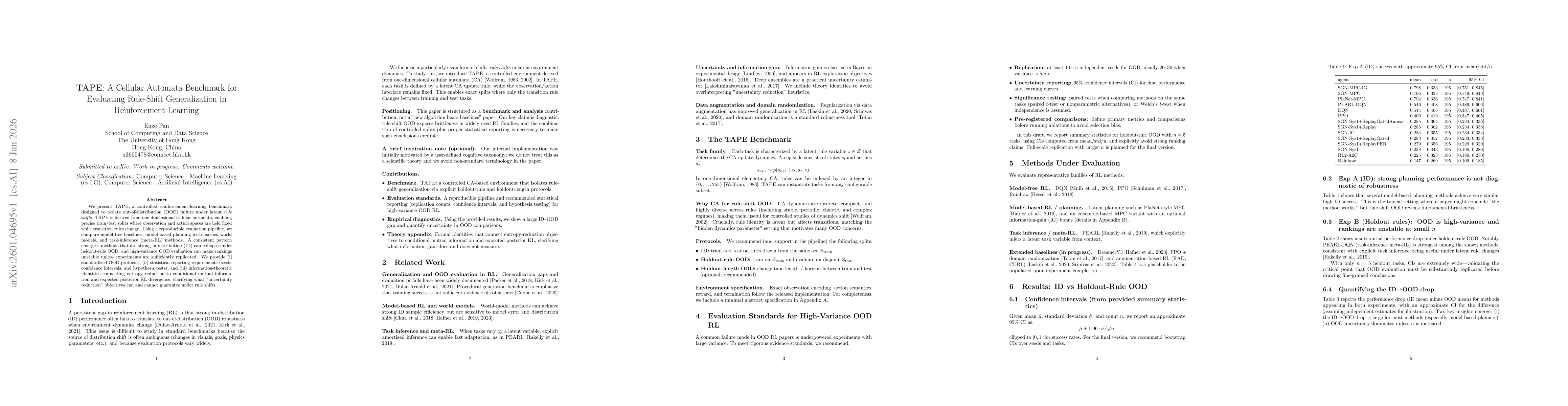 Tape: A Cellular Automata Benchmark for Evaluating Rule-Shift ...