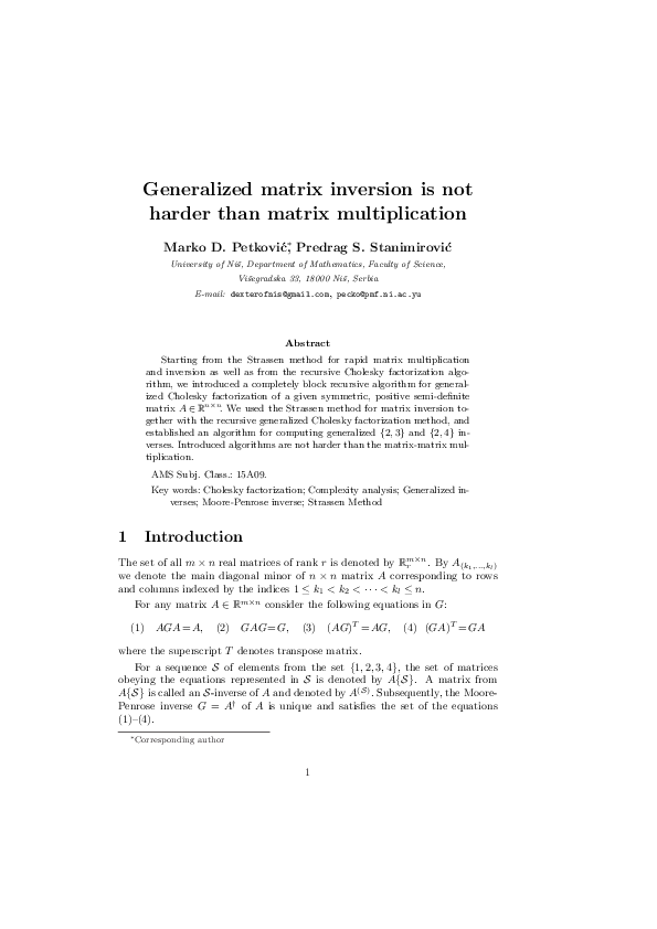 (PDF) Generalized matrix inversion is not harder than matrix multiplication