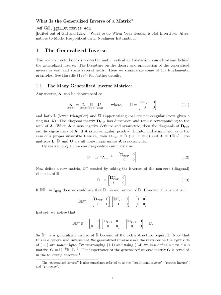 1 The Generalized Inverse: What Is The Generalized Inverse of A Matrix ...