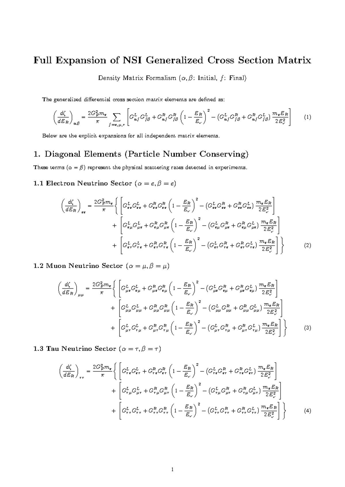 Generalized Cross Section Matrix Expansion for NSI (α, β: Initial, f ...