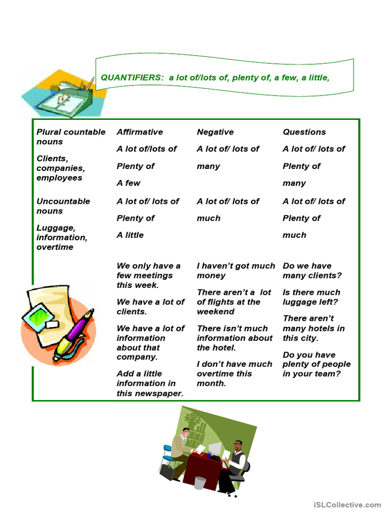 QUANTIFIERS: A LOT OF, MANY, MUCH, A FEW, A LITTLE worksheet | English ...